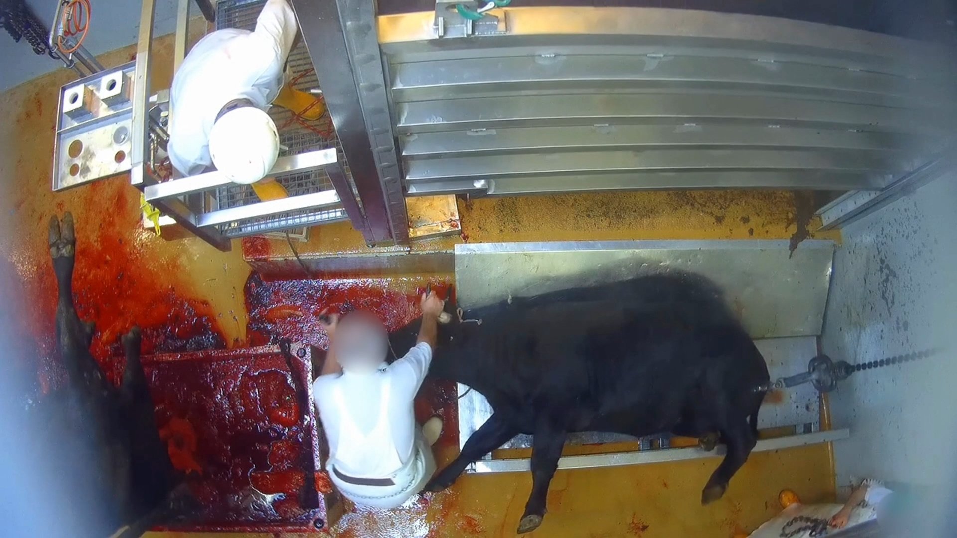 On y constate que l'abattoir ne respecte pas la législation sur l'abattage: animaux stressés et frappés par des éleveurs et des employés, queues tordues pour faire avancer les vaches, étourdissements ratés avec des animaux potentiellement égorgés encore conscients.