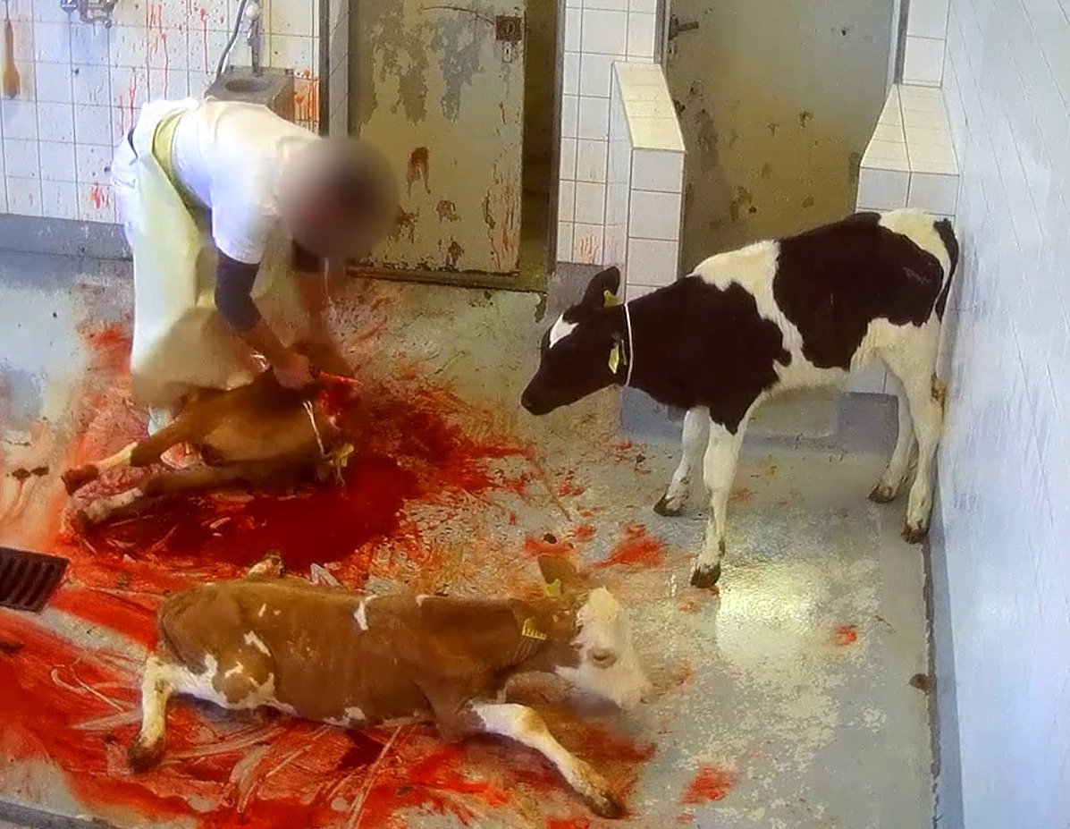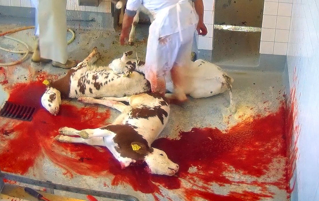 Comment expliquer que l’on trouve les images ci-dessus choquantes alors que la législation sur la protection des animaux est respectée ? La raison est simple : nous tuons des animaux contre leur gré et cela ne peut se faire que de manière violente suite à différents actes de résistance de leur part.